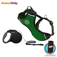 Arnes De Perro Doco Comfortable M Verde Correa Retractil